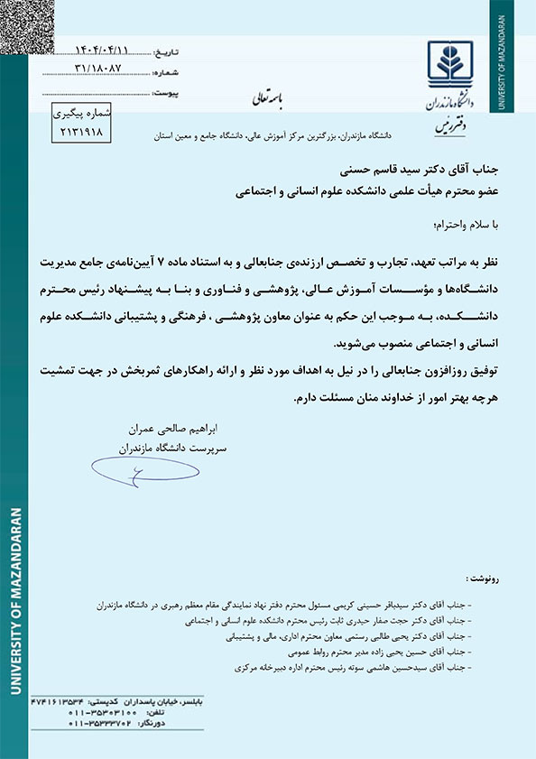 انتصاب معاون پژوهشی دانشکده علوم انسانی و اجتماعی