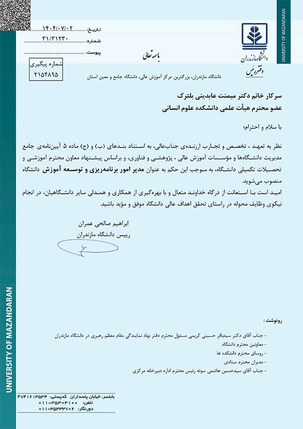 مدیر امور برنامهریزی و توسعه آموزش دانشگاه منصوب شد - دانشگاه مازندران